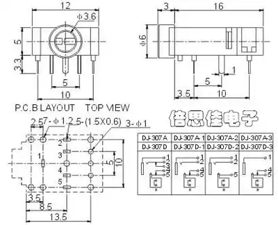 3 5 headphone holder PJ-307 3F07 8P two-channel female seat stereo audio socket 8 feet in-line with switch