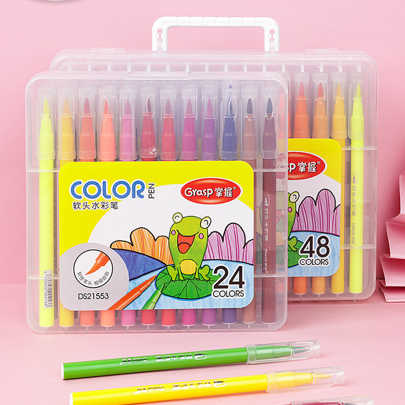 Soft head watercolor pen set kindergarten children 24 colors elementary school students with color pens can be washed 36 colors watercolor painting brush 48 colors baby graffiti beginner boxed safe hand-painted pen large capacity