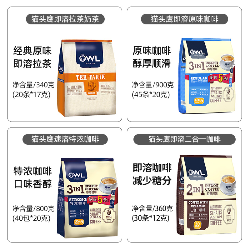 Malaysia original imported owl coffee espresso three-in-one instant coffee 800g pack