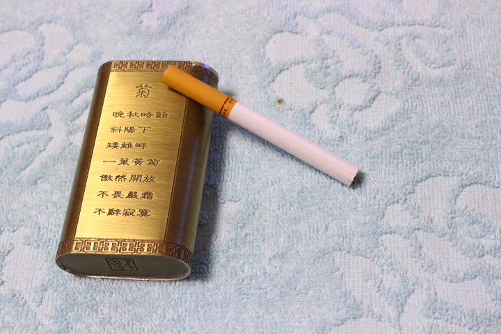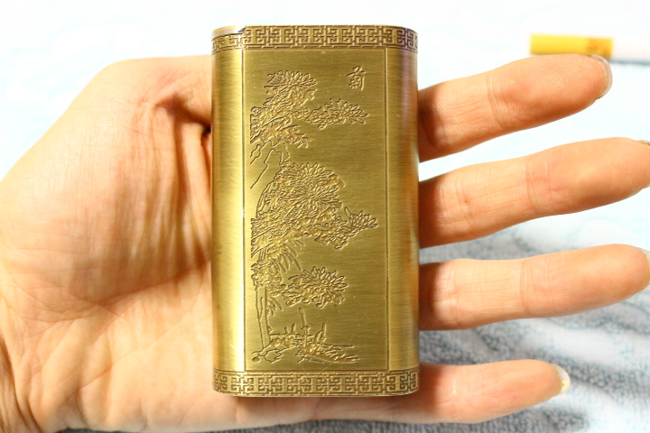 Pure copper cigarette case 10 load dry cigarette smoke infighting tobacco box hand roll of tobacco leaf engraving chrysanthemum upscale retro incense