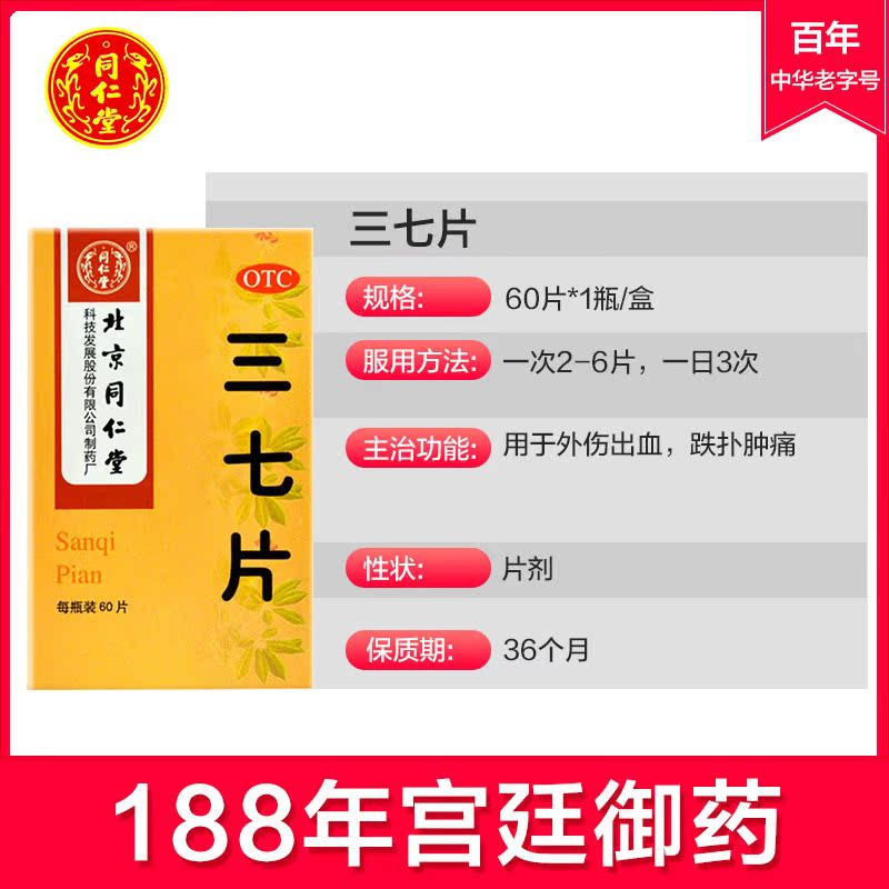 Beijing Tongrentang 37 pieces of scattered bruising and bleeding and pain trauma bleeding and pain medicine 60 tablets
