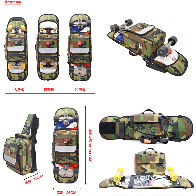 Tide brand one shoulder cross-body skateboard bag land punch board bag land surfboard double rocker protector storage backpack skateboard bag