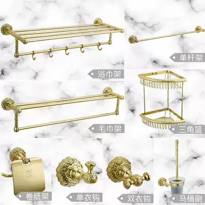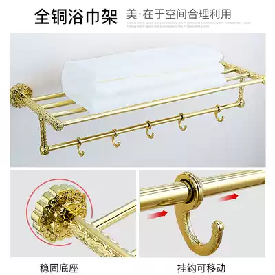Old coppersmith Xiangyun real gold bathroom pendant all copper light luxury wind towel rack powder room bath towel rack hanging rod