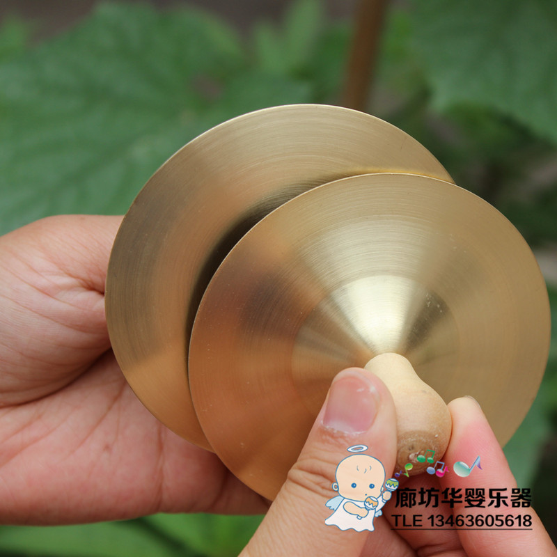 Children's small cymbals wood handle bronze cymbal Alf percussion instrument gong drum nursery school three and a half morning teaching aids copper rubbals