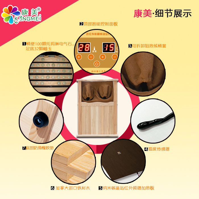 Kangmei far infrared foot bath tub Tomalin tourmaline sweat steaming bucket Household spectrum smoked wooden barrel foot bath tub