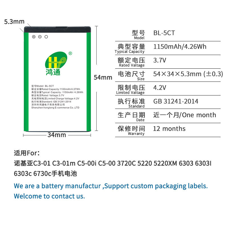 Hon Thong applies to Nokia bl-5ct bl5ct bl5ct C3-01m C5-00i C5-00i 3720C 3720C 5220 5