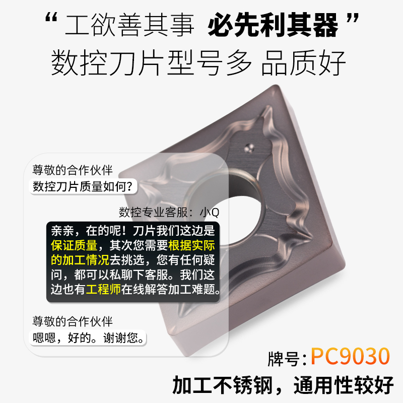 Numerical control car cutter lathe cutter CNMG12 rhombus 80-degree blade grain head outer round inner hole knife stainless steel steel piece