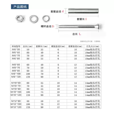M6M8M10M12 304 stainless steel expansion screw extension screw pull explosion * 80-100-200mm