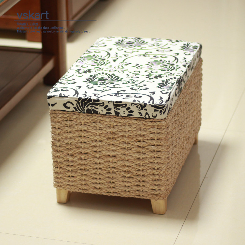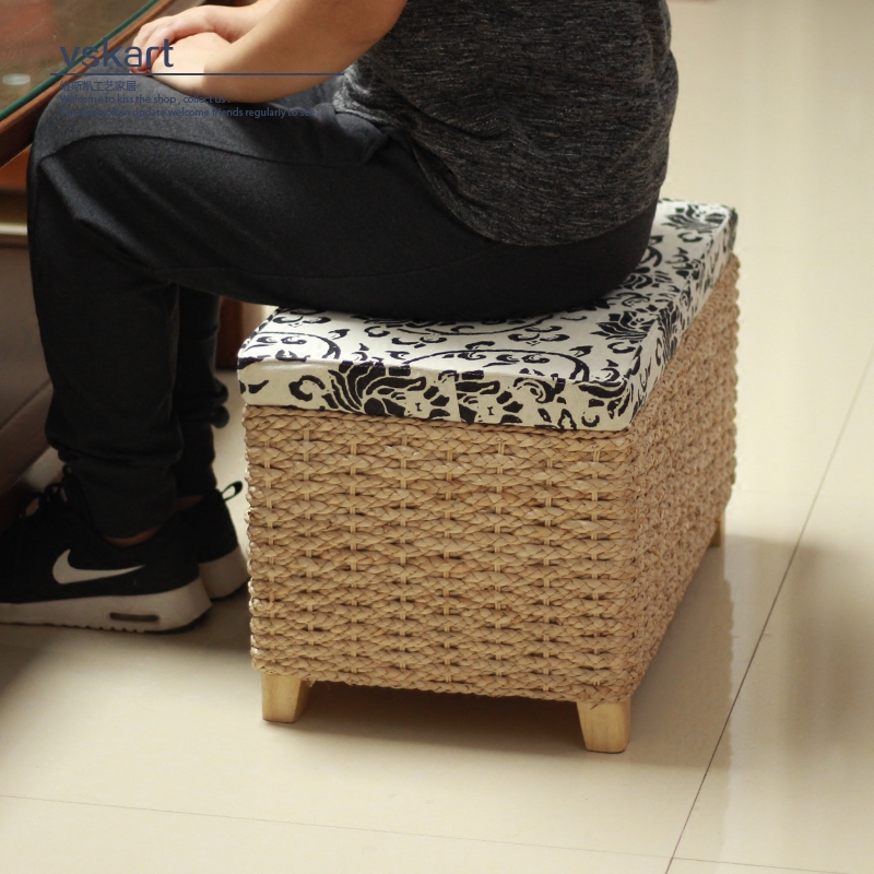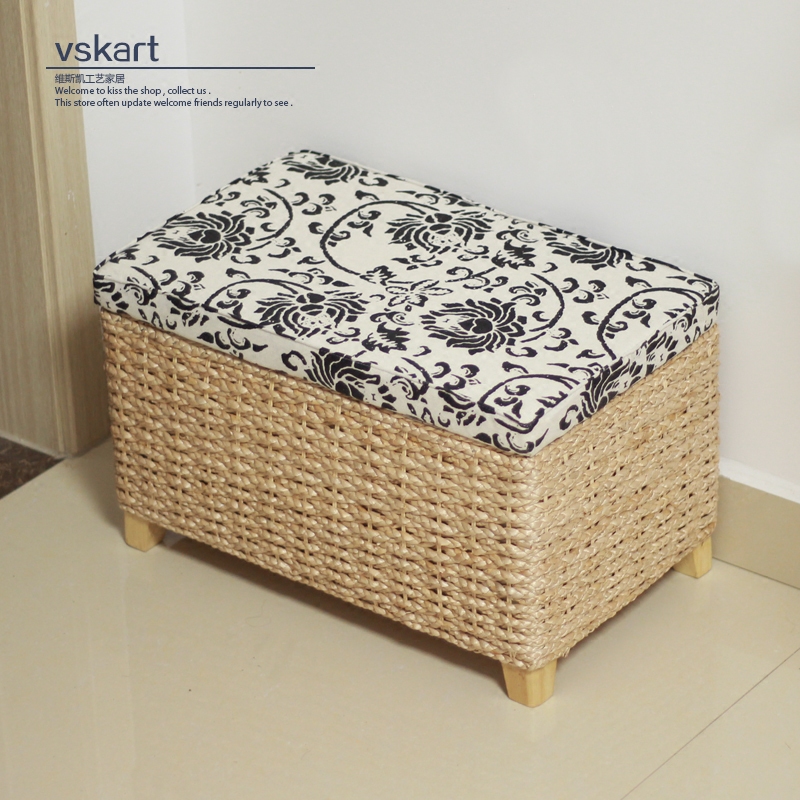 Straw storage stool storage stool hallway change shoe stool sofa stool adult solid wood can sit people finishing box home stool