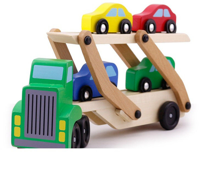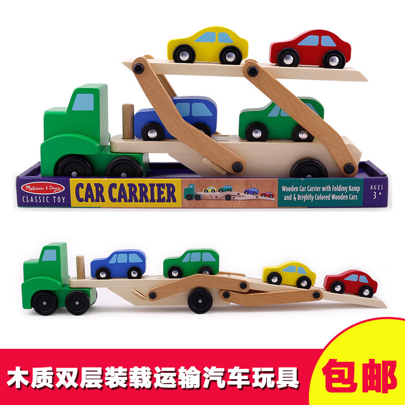 Wooden double-decker car model Wooden master car to send small boys and children wooden car toy car model ornaments