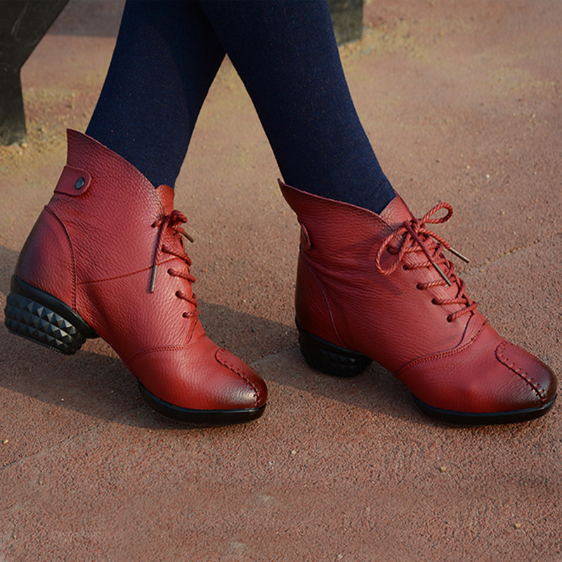 Belle Autumn Winter Women Dance Shoes Genuine Leather Jazz Modern Square Dance Shoes New Dancing Shoes Women Soft-bottom Dance Shoes
