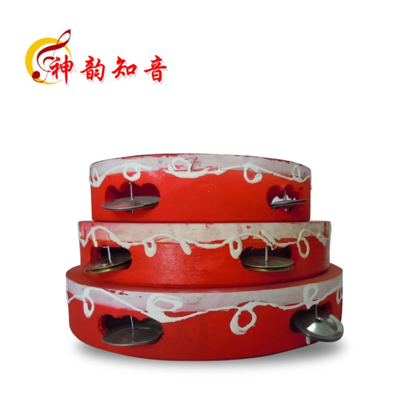 Sheepskin flower tambourine 18cm kitten pattern children's percussion instrument dance props Xinjiang hand beat drum Bell Drum
