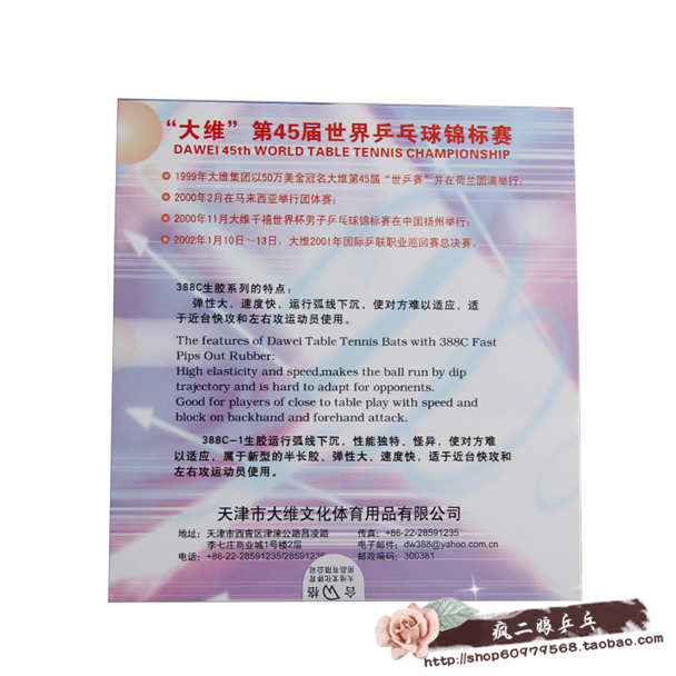 Crazy Erniang ping pong DAWEI Dawei 388C-1 raw rubber rubber table tennis racket rubber