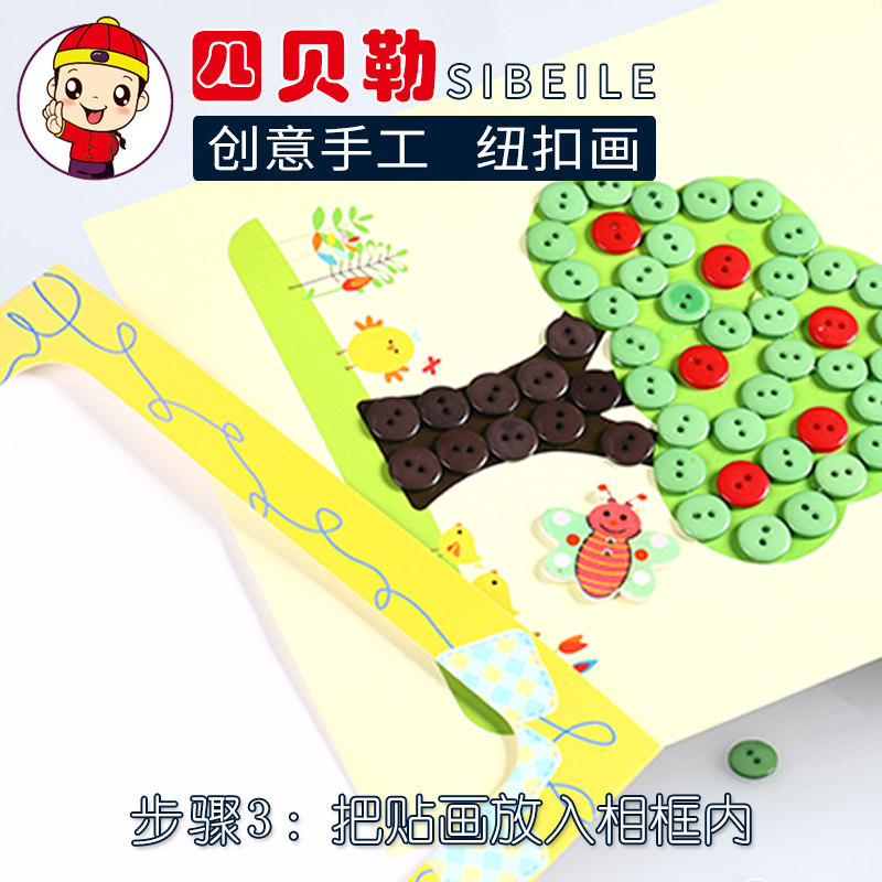 Button drawing with frame diy button painting children's handmade material package kindergarten small class creative paste painting