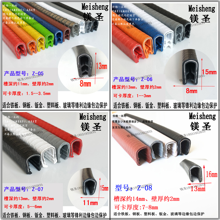 Self - clamping edge protection strip U - type protective rubber seal round glass open iron - leather bar