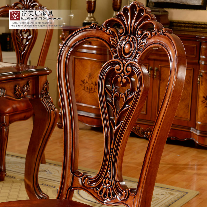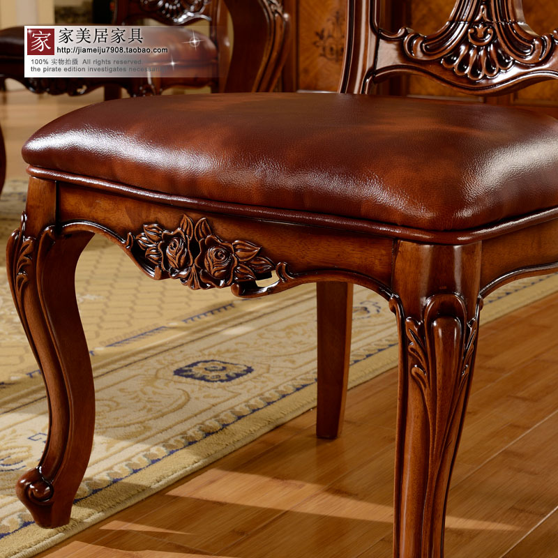 Eurostyle Solid Wood Dining Chair Real Leather Chair Hotel Dining Leather Stool American Antique Casual Backrest Negotiation Chair-Taobao