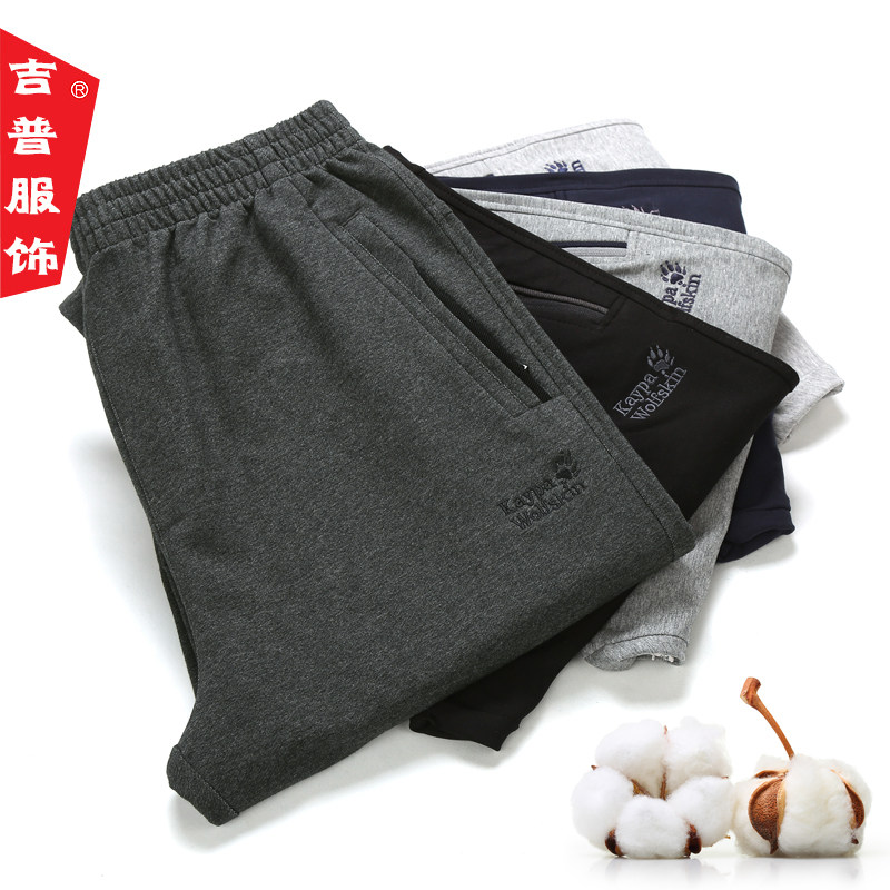 Sweatpants men's trousers winter dad loose thickened middle-aged fat plus size velvet casual thick cotton pants fat