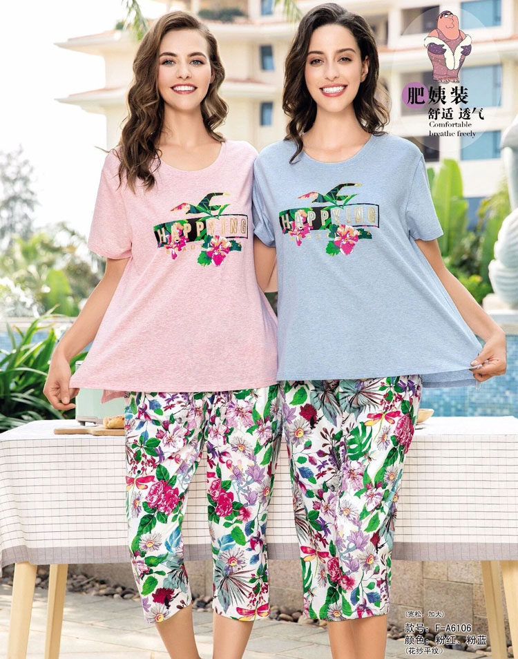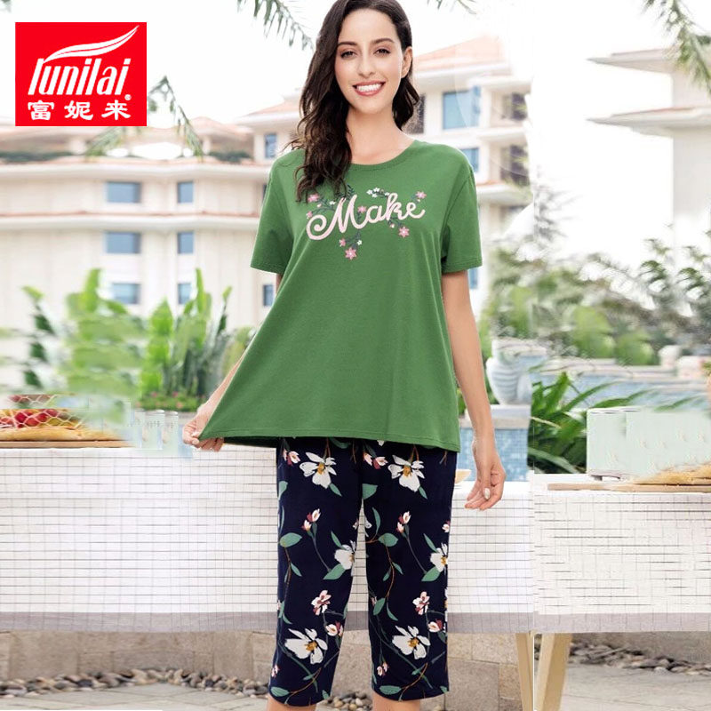 Fu Nilai home clothes female summer pure cotton short-sleeved plus fertilizer plus size pajama pants set mother fat woman dress fat MM loose