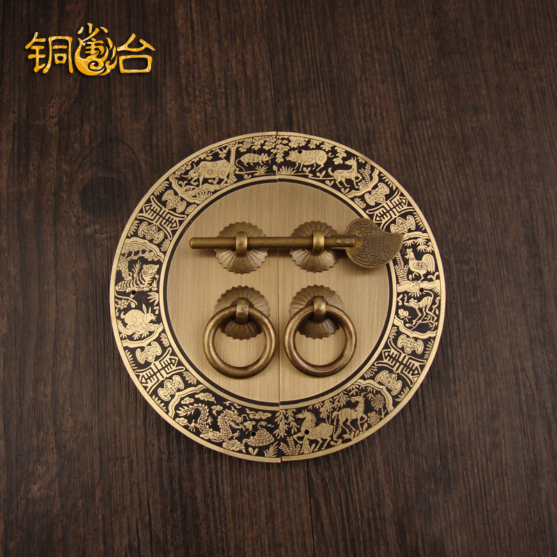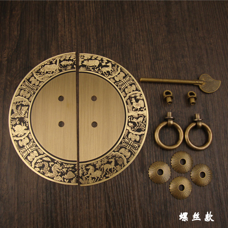 New Chinese style furniture duozodiac round pure copper handle imitation ancient furniture cupboard wine cabinet double door open Ming and Qing furniture-Taobao