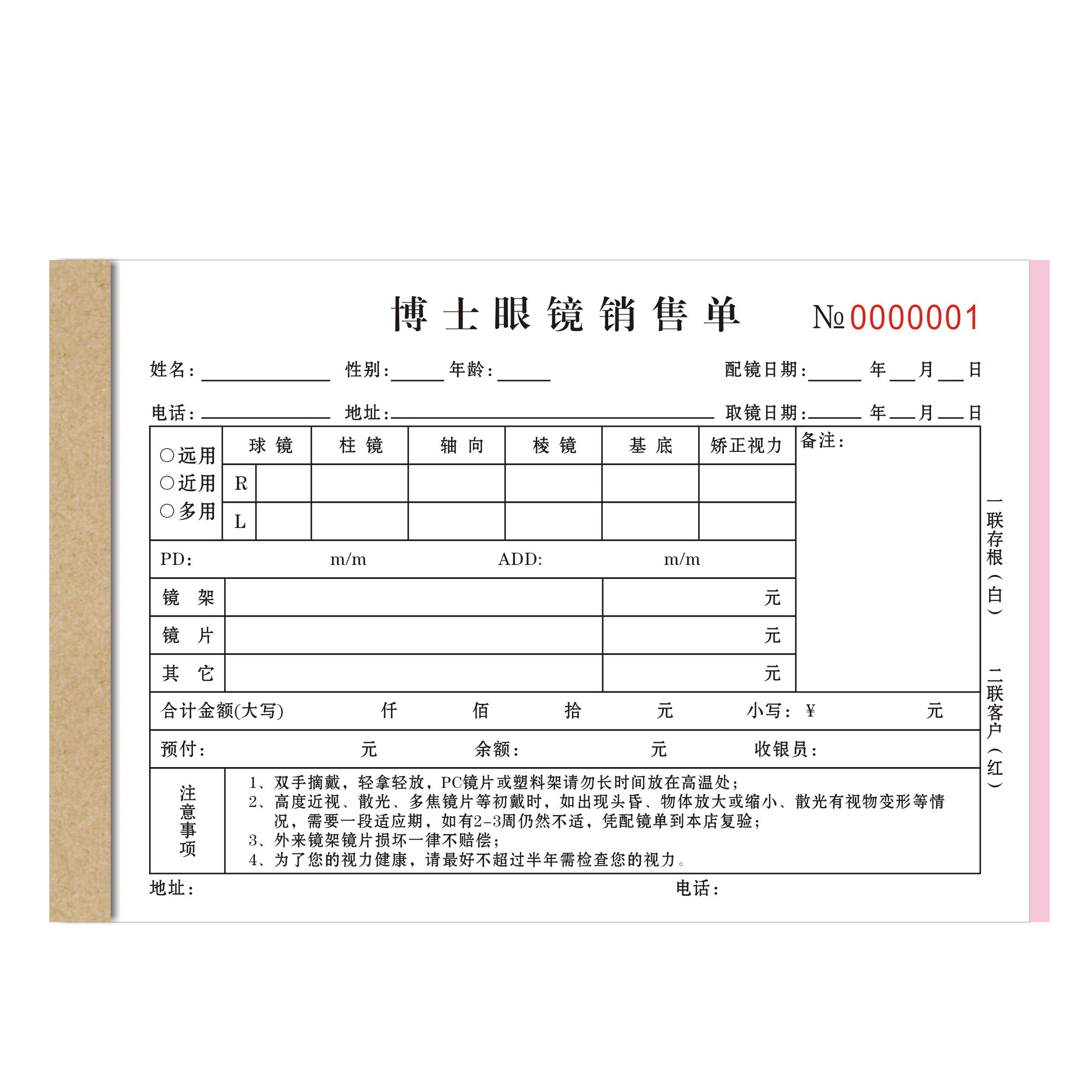 Glasses sale Single-set for matching glasses Single-inspection single glasses Shop Receipt Three-four-link no carbon rewritten link single printing