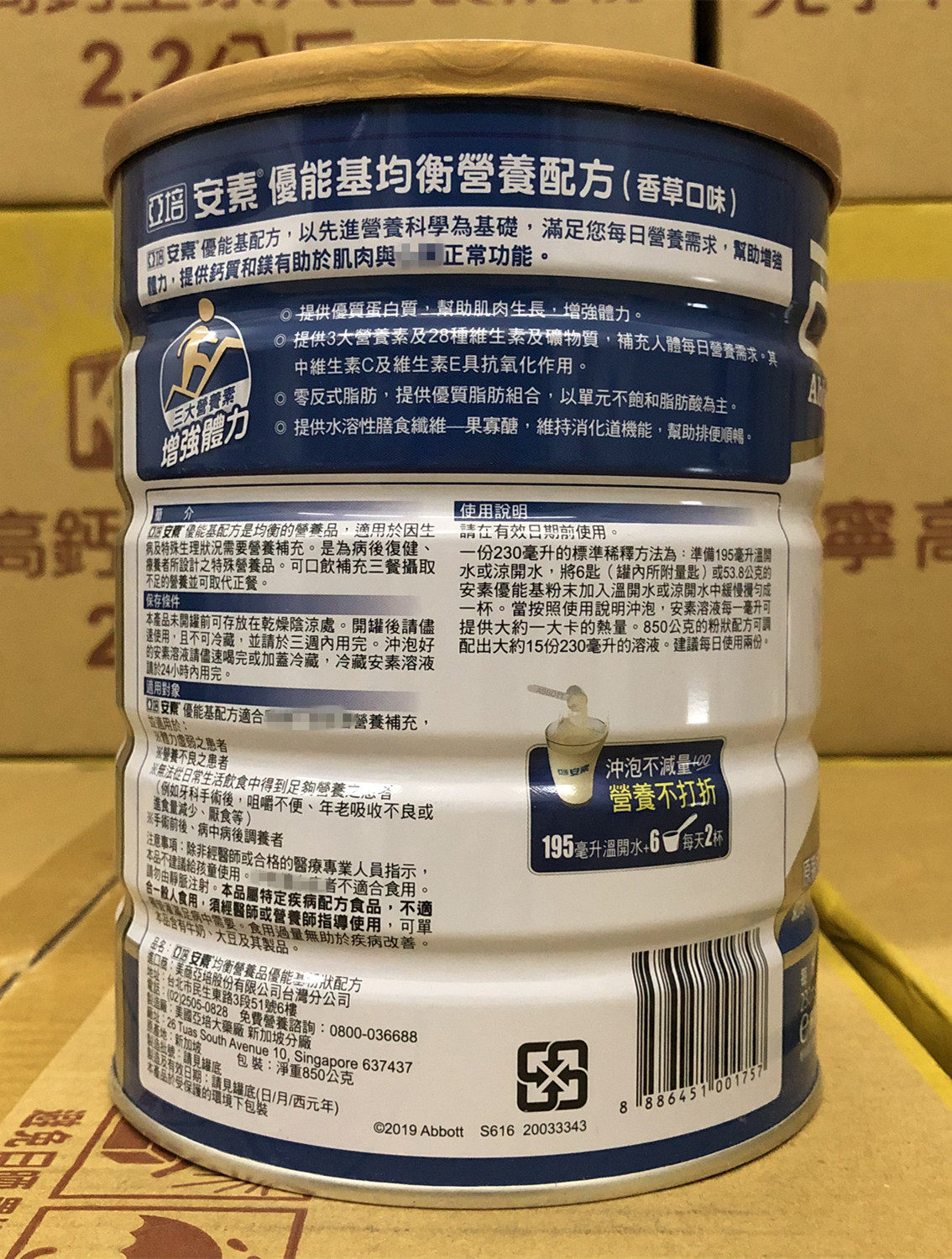 Two 850g cans of Taiwan's Aperamsu Yonengji Nutritional Supplement Milk Powder from Singapore before and after surgery
