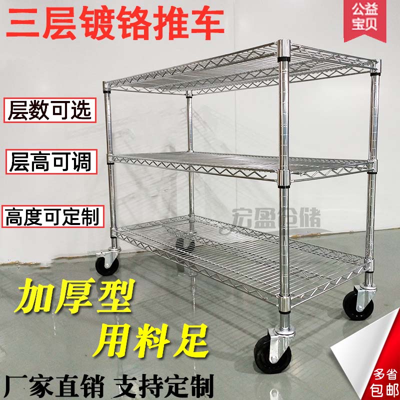 Shenzhen chrome-plated shelf workshop trolley shelf Anti-static material car Carbon steel wire mesh three-layer transfer car