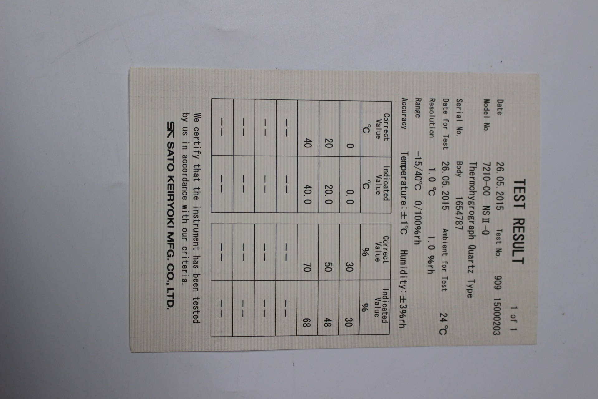Sato Sato SIGMAII7210 - 00 temperature and humidity recording instrument