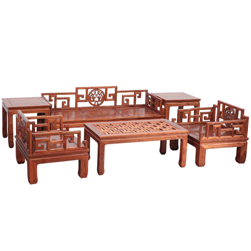 Solid wood palace sofa Ming and clear antique elm wood sofa 7 pieces New Chinese style sofa trio Place combined full dress