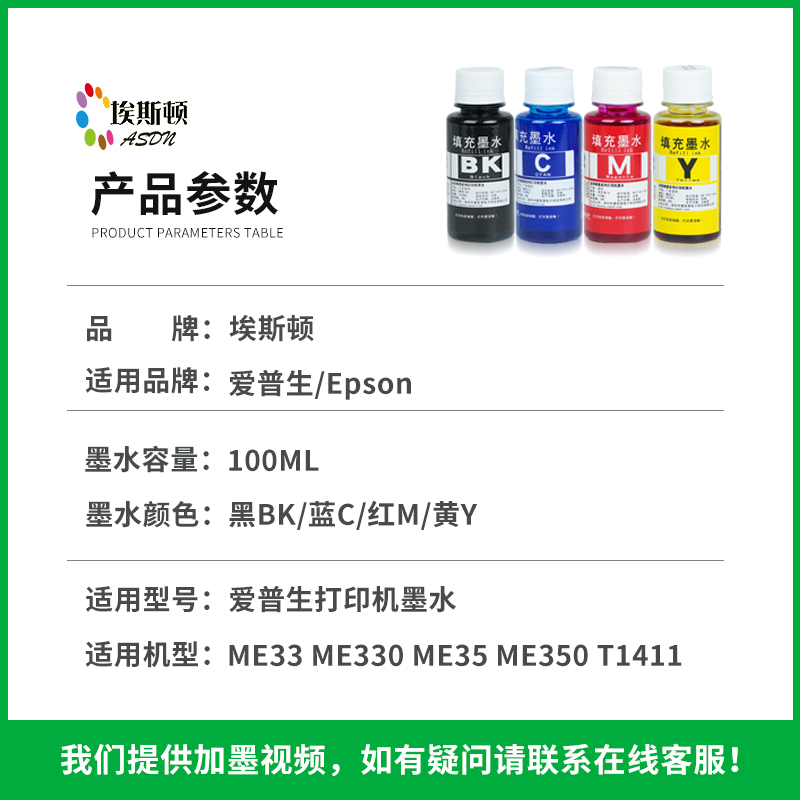 (SF) Eston suitable for Epson printer ink ME33 ME330 ME35 ME350 T1411 inkjet four-color refill black color for filling