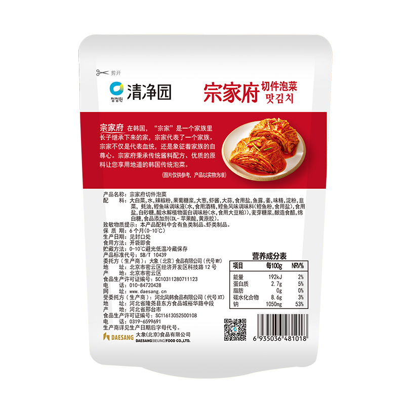(4 pieces 88 discount) A clean garden clan home government kimchi 80g * 5 sacks bags South Korean Korean style spicy cabbage leftovers