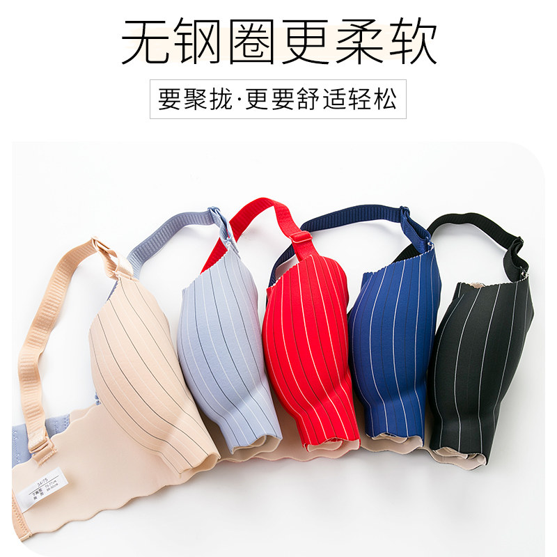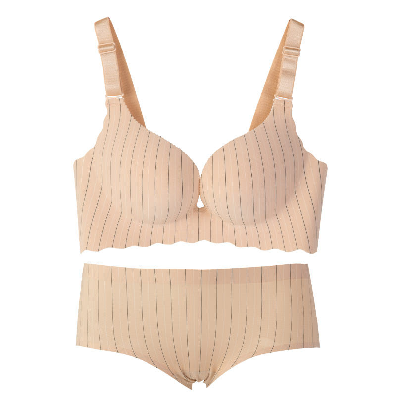 One-piece incognito underwear Women's rimless underwear set Gathered small-breasted girl student High school student corset bra