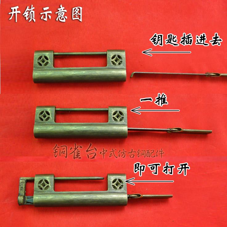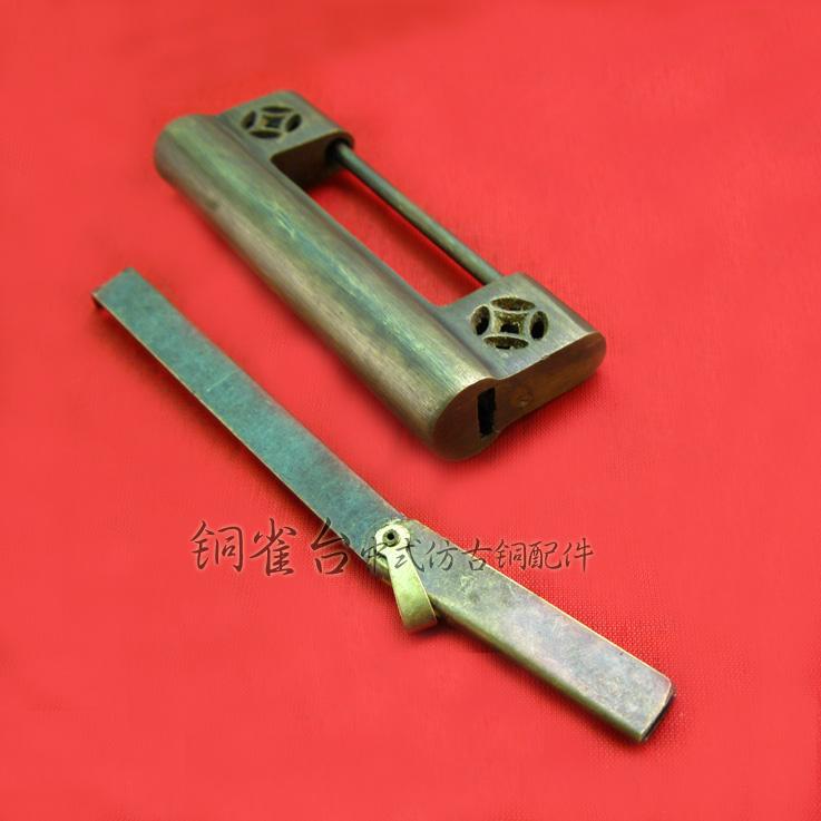 Copper-money patterned bronze lock antique lock imitation ancient bronze lock Chinese style lock head old small copper lock bolt lock cross open padlock-Taobao