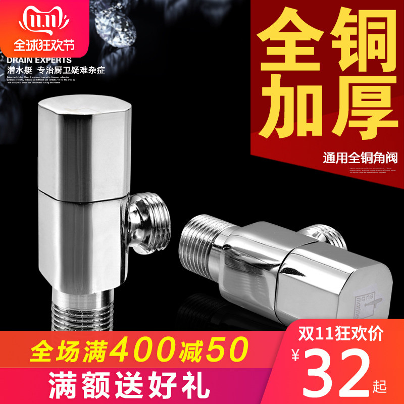 Submarine angle valve thickened all copper hot and cold triangle valve water heater faucet eight-character check valve water separation valve switch