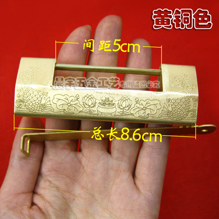 Double Fish Drama Lotus Imitation Antique Bronze Lock Antique Bronze Lock Chinese Lock Head Old Small Brass Lock Bolt Brass Lock Cross Open Padlock-Taobao