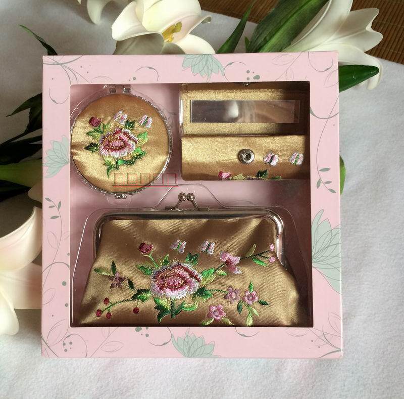 Suzhou Silk embroidered suit mirror mouth red box embroidered zero wallet Three sets of gift box upscale gift giving gift