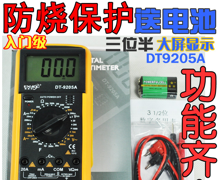 Digital multimeter electric meter current voltage electrician table DT9205 universal table with beep lights