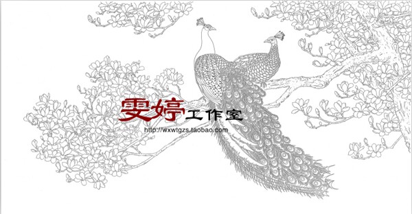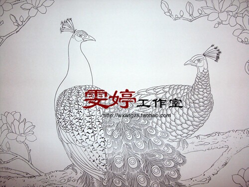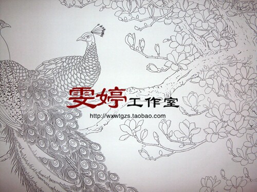 Gong pen painting white drawing bottom draft - auspicious as intention Peacock magnolia 88 * 170 cm painting Chinese painting character painting six feet