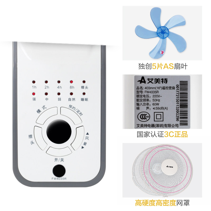 Aimette fan 5 pieces of leaf electric fan remote control wall fan FW4035R home hotel 16 inches of ecstasy wall-mounted fan