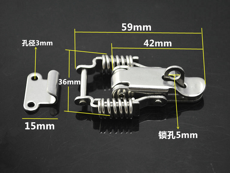 Thickened 304 stainless steel double spring buckle wooden case heavy lock box Industrial Buckle Luggage Accessories