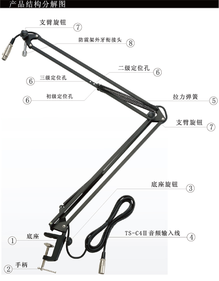 Rack Wang microphone Desktop universal large cantilever bracket 360 degrees adjustable with male bus 3 5MM hair clip agricultural line