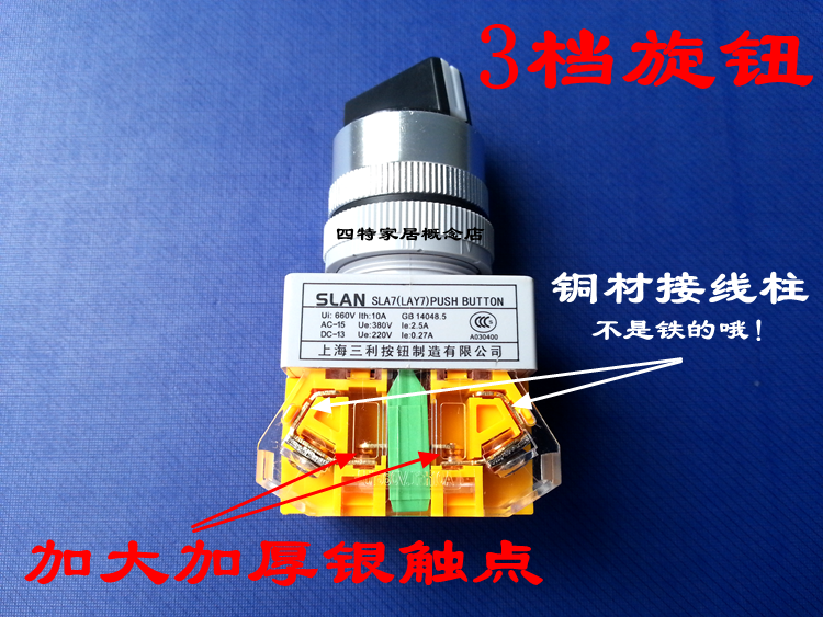 Three-libs button three-gear knob switch 2 often open three selection switches SLA7-20 * 31 boreholes 22MM