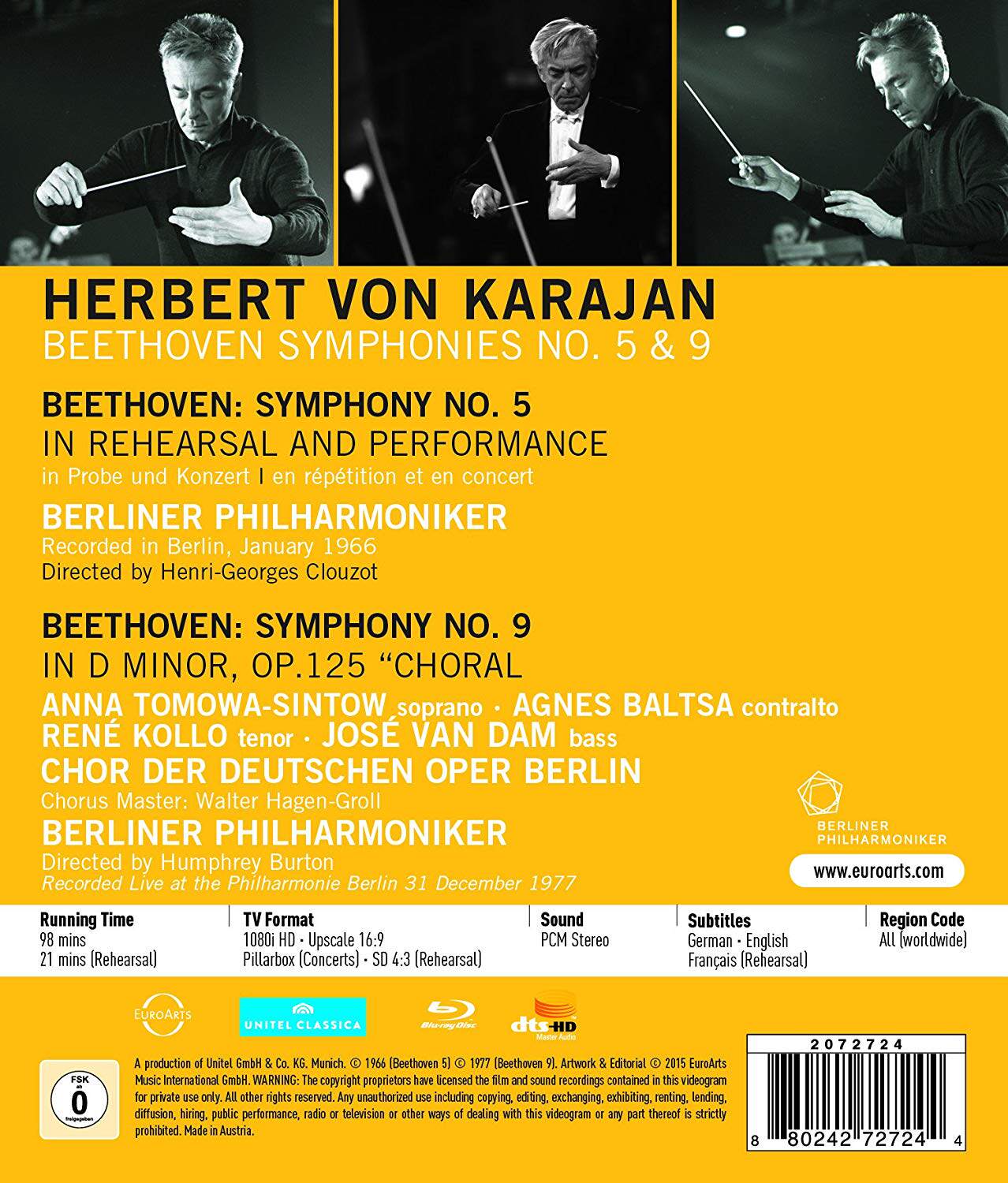 Beethoven's Fifth Symphony (1966) Ninth Symphony (1977) Karajan Berlin Philharmonic 25G