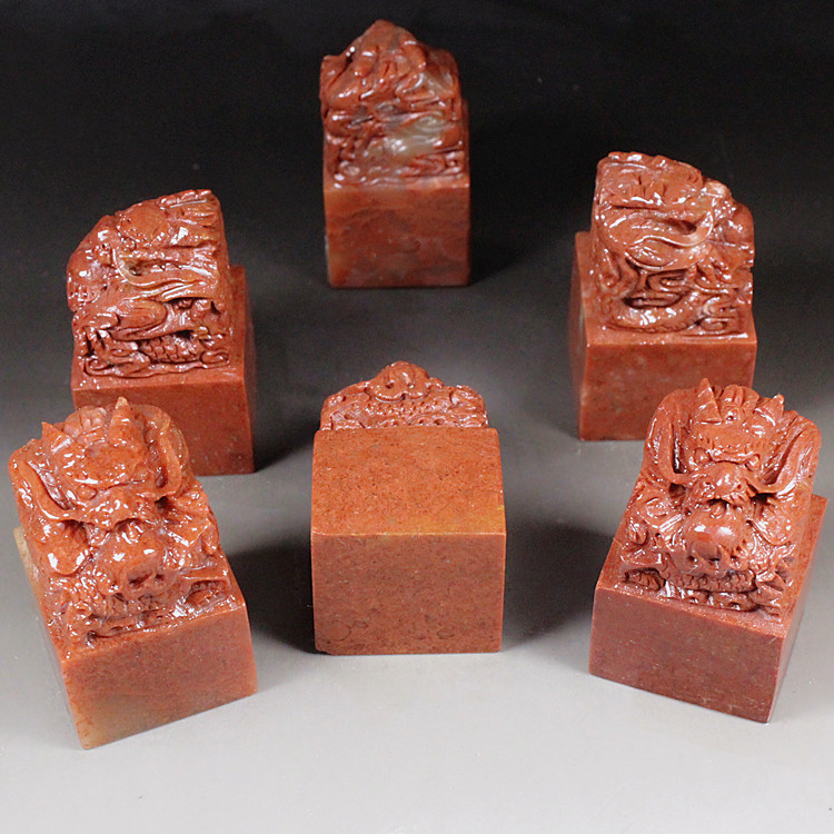 Boutique Shoushan Stone Shop Natural Red Stone Frontal Dragon Seal Material Seal Material Gold Stone Seal Engraving Name Lettering Gift