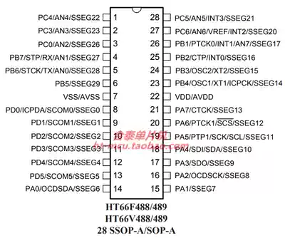 Hetai original HT66F489 28SSOP AD type single chip with LED driver UART serial port generation burning