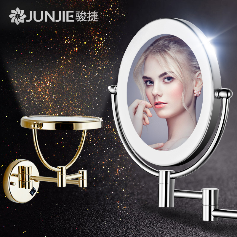 Bathroom makeup mirror LED with light beauty mirror Wall folding telescopic mirror Hotel powder room double-sided makeup mirror