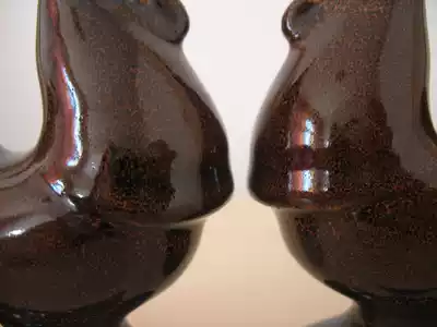Cizhou kiln 70 80 s flower glazed Rooster pen holder pair of pen washing pen holder 1980s Handan ceramics