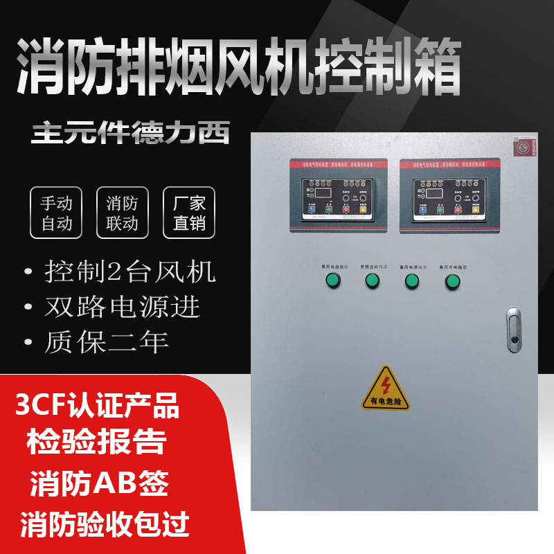 CCCF certification one control two dual power supply fire exhaust fan control box linkage control cabinet AB label power distribution 11KW