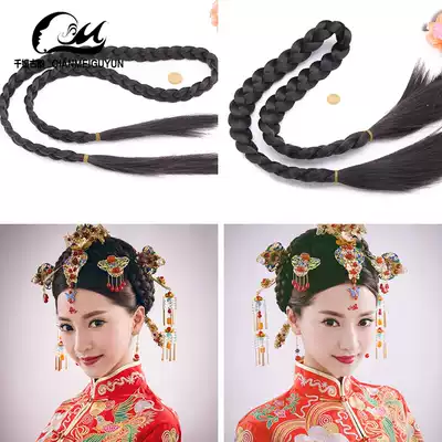 Costume modeling double-headed twist braided wig Long braided Bride Xiuhe pigtail Chinese thick braided children's long braided