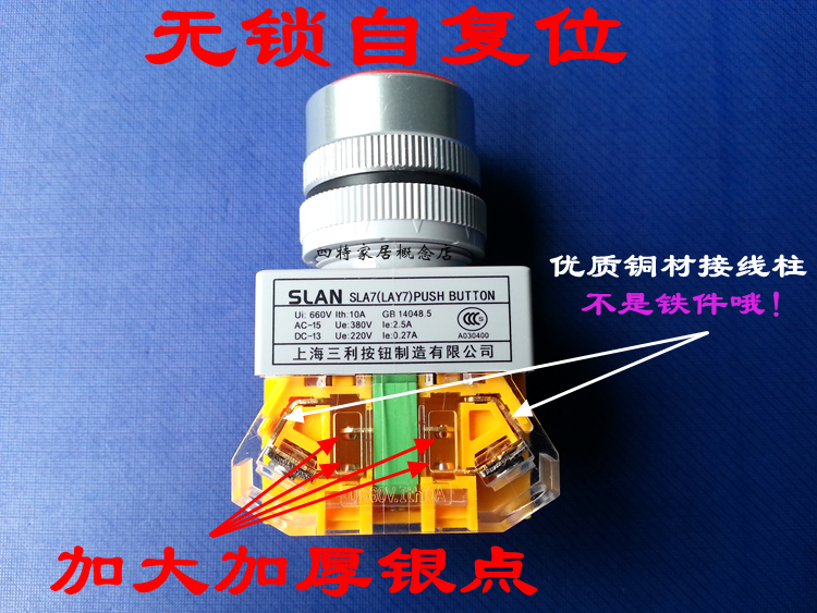 Three Ley No Lock Self-Reset Button Flat Head Start Button SLA7-11BN Red Green 2 2 m