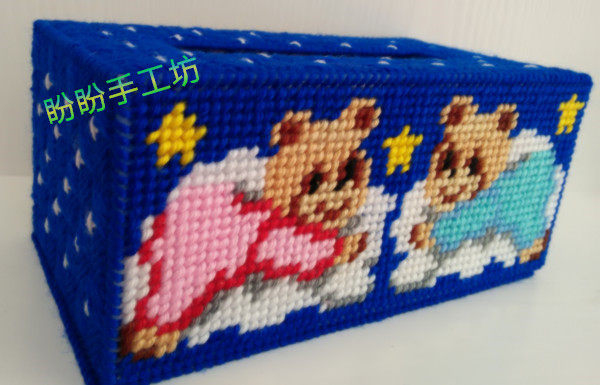 Solid Embroidery 3D Cross Embroidered New Living Room Home Handmade Art Cartoon couple Little Bear rectangular sanitary paper box